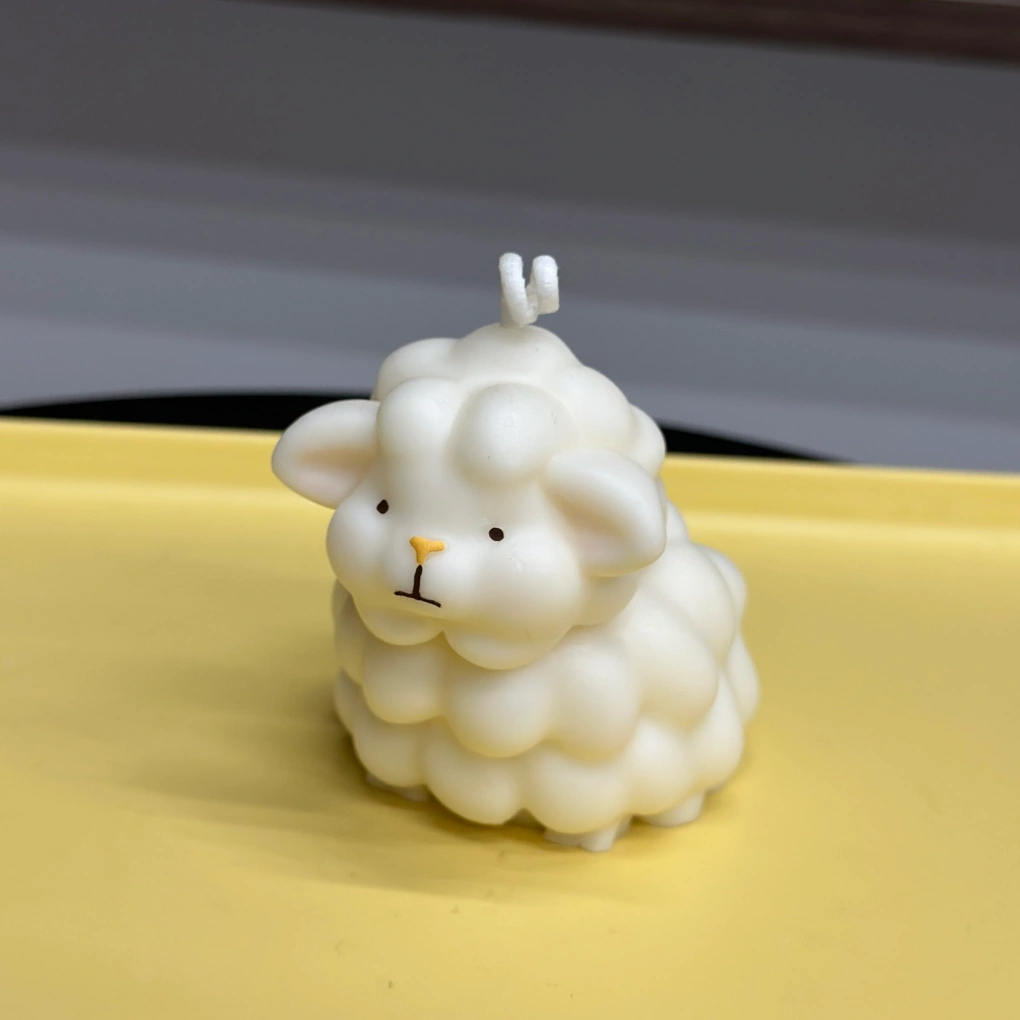 Each tiny detail of this baby lamb—from the bubbly wool texture to the sleepy hand-painted face and that signature spiral tail wick—has been lovingly sculpted and finished by hand. When lit, the flame dances right on top of the curly tail, giving the illusion of a happy little sheep trotting through your room with a glowing halo.