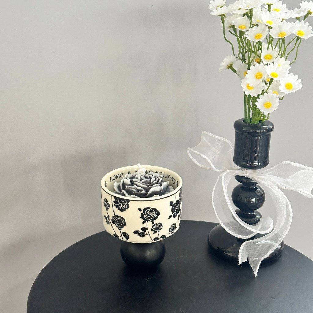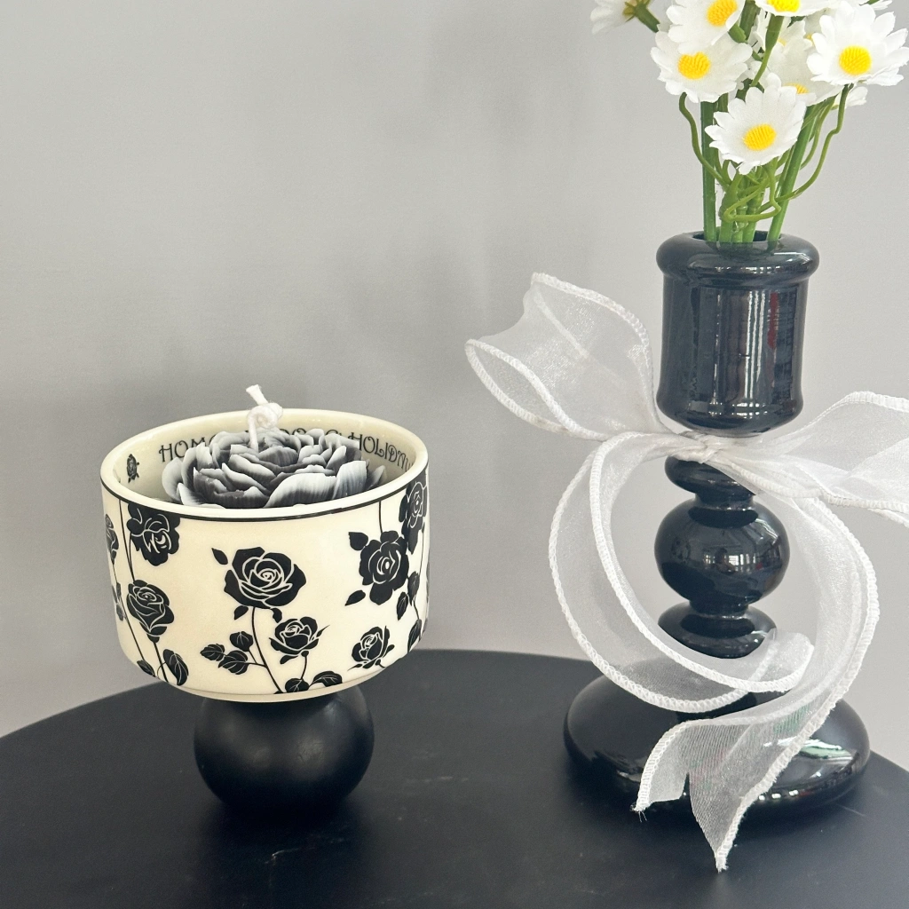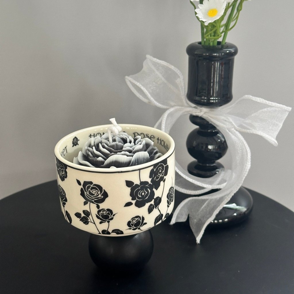 This isn’t just a candle—it’s a statement piece. The matte ceramic vessel, painted with timeless black roses climbing the sides, doubles as a keepsake jewelry box or planter long after the wax is gone. Each petal of the oversized 3D black peony on top is individually sculpted and placed by hand, creating a velvety bloom so realistic you’ll want to touch it.