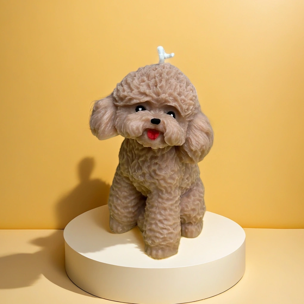 This little poodle puppy candle is more than just home decor – it’s a tiny piece of art that captures the playful spirit of a real toy poodle. Every curl of fur, the sparkling eyes, the tiny red tongue, and even the little tail on top (yes, that’s the wick!) are meticulously hand-sculpted and painted by artisans who love dogs just as much as you do.