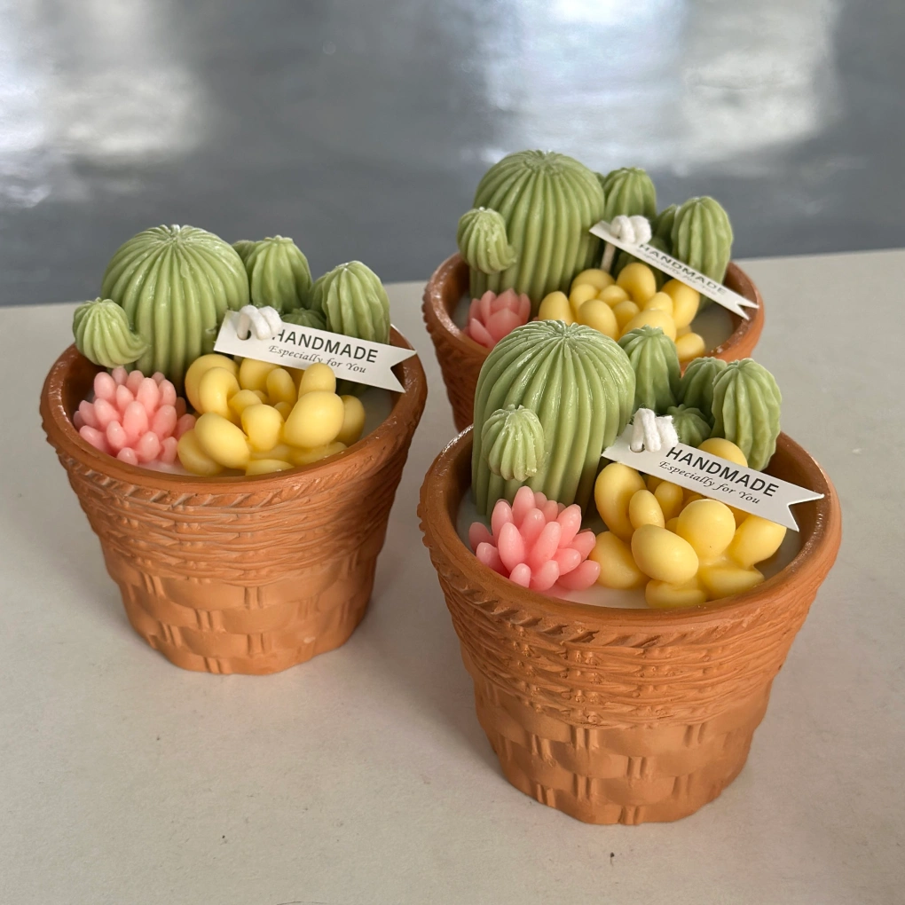 This charming succulent cactus candle is designed to look like a mini potted plant, adding a fresh and calming touch to any space. Handcrafted with eco-friendly, non-toxic wax, it provides a clean, smokeless burn that is safe for everyday use. Set in a realistic terracotta-style pot with detailed cactus and floral elements, it’s perfect for home décor, office desks, or gifting.